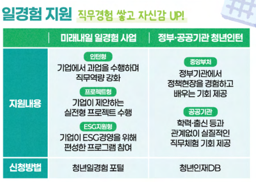 | 미래내일 일경험 사업 | 정부·공공기관 청년인턴 | |
